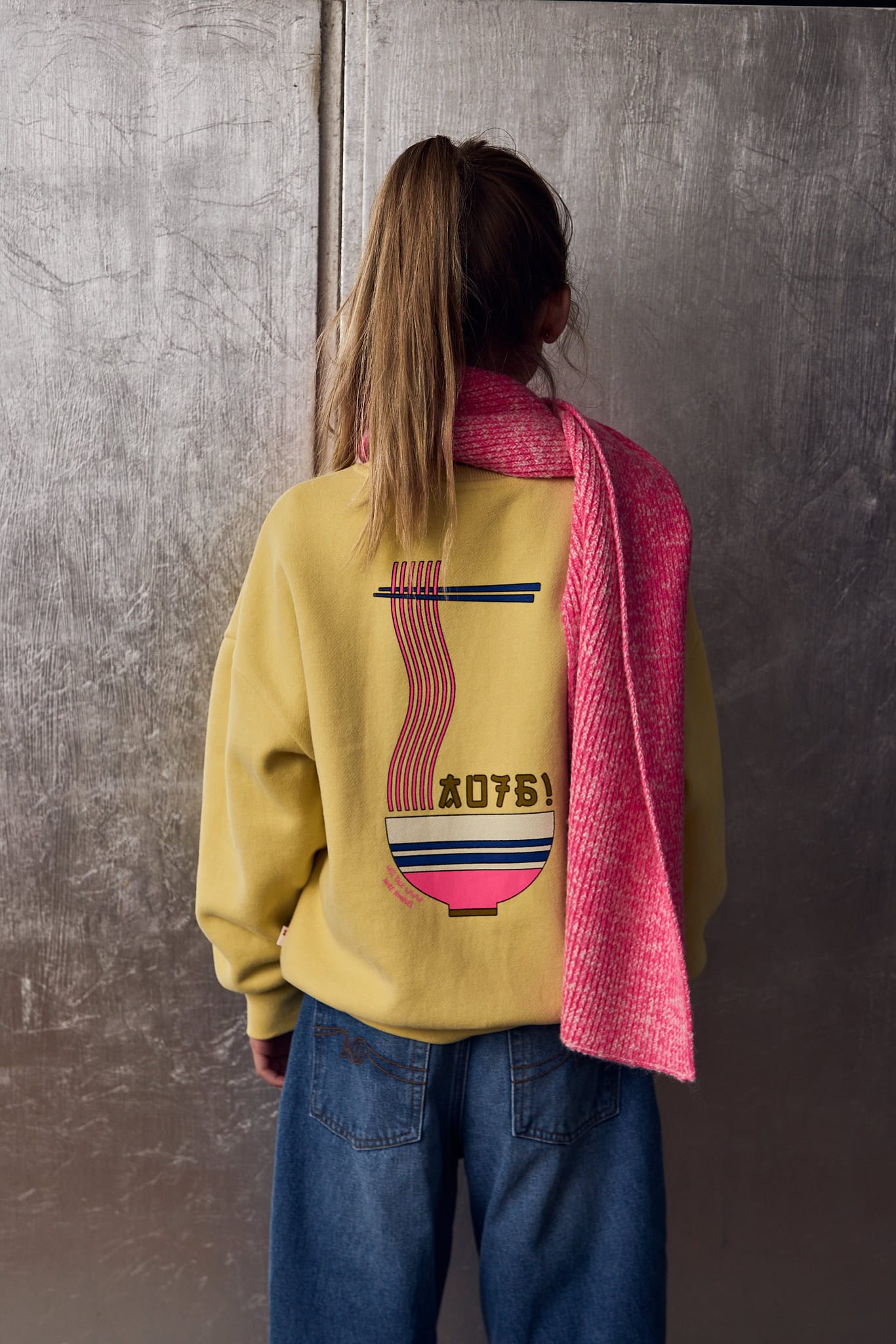 Asia has been an endless source of inspiration for this season. Its fashion sense for implementing new styles and fabrics, its typography for creating strong slogans, its recognisable symbols such as the Japanese koi fish, origami birds, the Korean flag & cherry blossoms for designing our unique artwork and its food culture with its noodle bowls and kimchi for styling our fronts and backs.