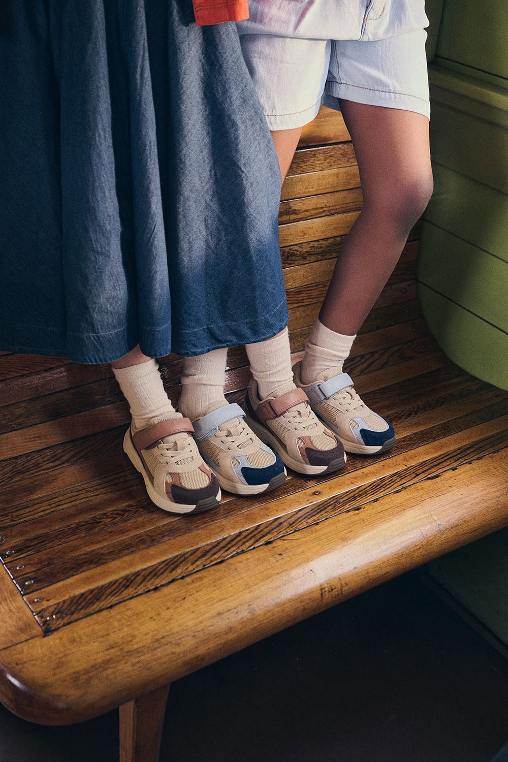 Flexible soles, breathable materials and carefully shaped lasts allow children to move as they instinctively do — running, climbing, pausing, exploring. The aesthetic is understated and thoughtful, favouring timeless colours and textures that integrate easily into everyday wardrobes.