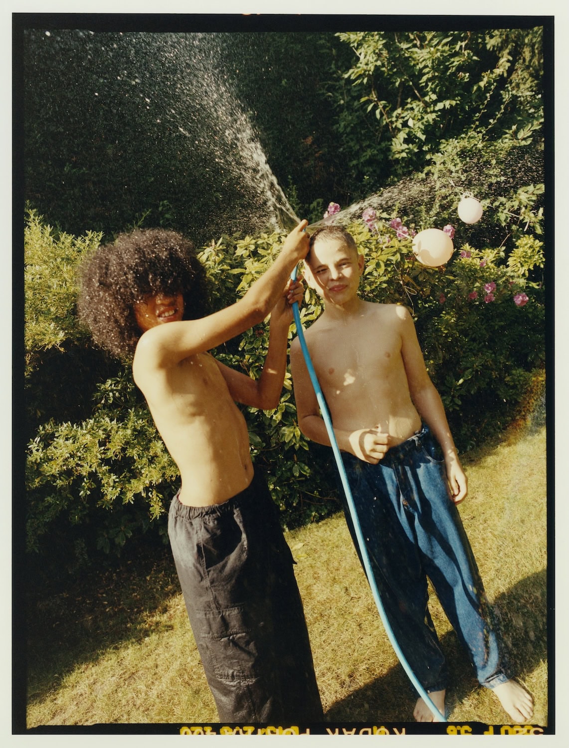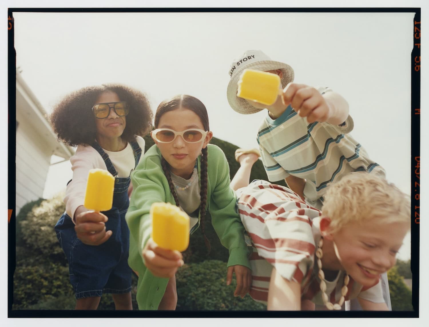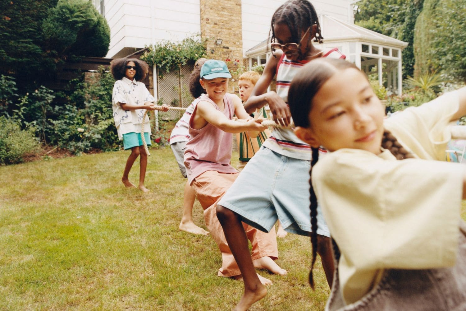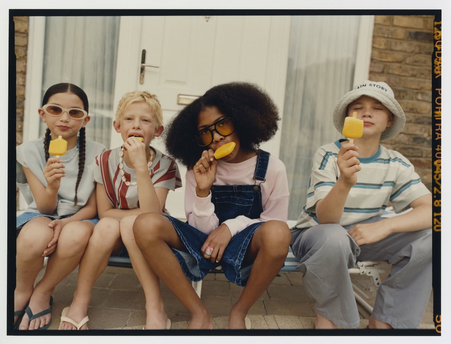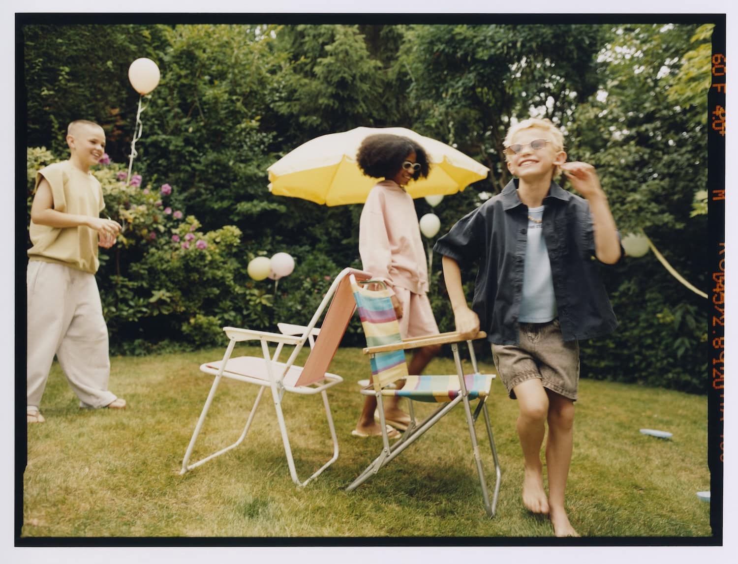A golden summer day begins at Gran’s house. The door swings open, and the children tumble out — barefoot, breathless, already laughing.