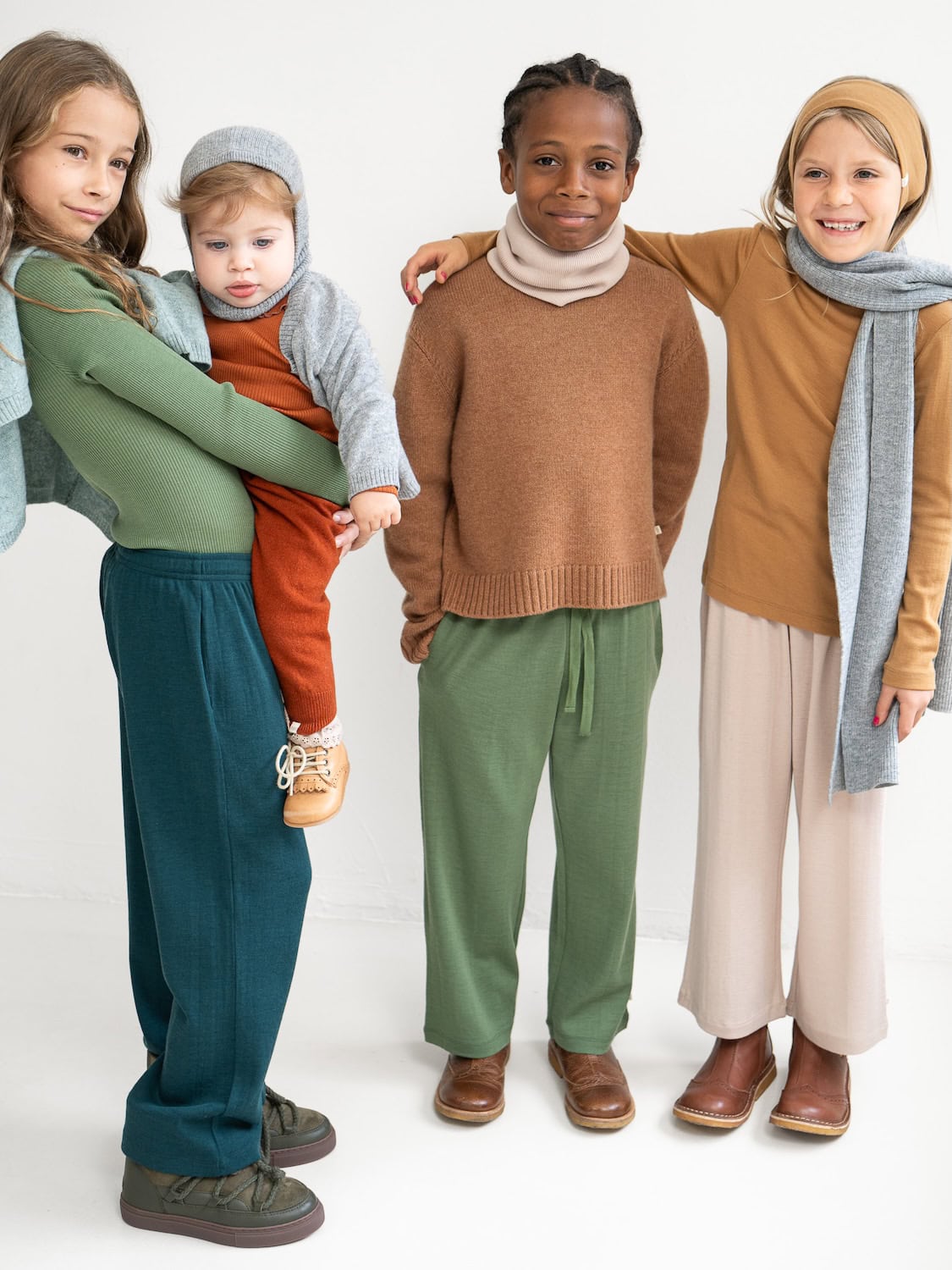 Designed for little explorers, our Autumn | Winter 2025 collection embraces purely natural material, crafted with freedom of movement and comfort at its heart. Each piece is tailored to keep kids warm as they run, jump, and play in harmony with nature. From seamless merino wool and silk essentials to our 100% GOTS certified organic cotton and lightweight wool-silk blend collection, every fabric is carefully selected to ensures the softest, gentlest touch against the skin. Luxuriously soft cashmere and lambswool knits are perfect for layering as the days grow colder.