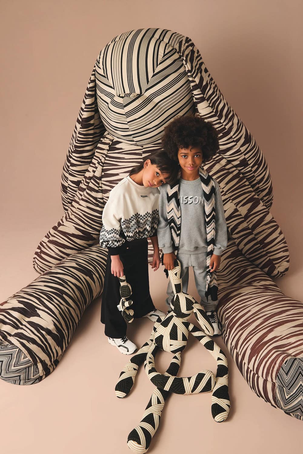 Missoni Kids is a reinterpretation of the brand’s historical canons in a version suitable for little ones. A new point of view that gives life to a line of garments in which the iconic features of the Maison are reinterpreted to meet the tastes and needs of the little ones. Identity features such as the use of slubby yarns, the classic zig-zag, or the patchwork construction are illuminated by new joyful and lively colours.