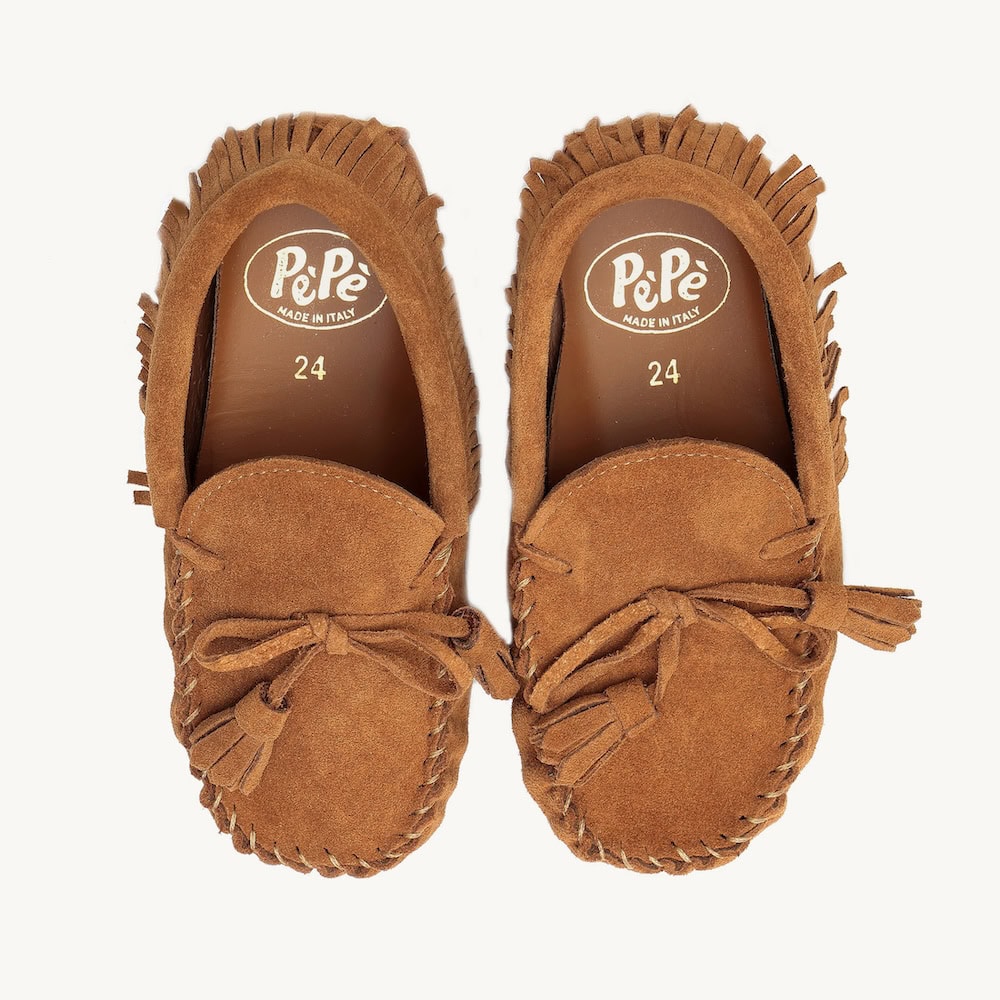 The brand’s history dates back to the post-war years when it took its first steps in the framework of the Footwear Company PUPA, later renamed M.A.C.I., one of the foremost industrial hubs of the town of Vigevano, at that time the European shoe capital. Determined to create and produce a range of shoes for newborns, in 1966 the founder, Erideno Pizzetti, registered the trademark “PèPè”, inspired to the onomatopoeic word commonly used by children to designate shoes. In the 1970s, he set up a new, independent family-run, handicraft-oriented business, “Calzaturificio PèPè”, and committed all his energy and effort to making premium children’s footwear, ranging from newborn shoes to home and kindergarten slippers. As the Eighties approached, Dario joined the company and began supporting his father with two ambitious goals in mind: producing shoes 100% on site and broadening the design range. Towards the late Nineties, Dario’s wife Paola joined the company. It was the time when the first “collections” were presented and the current identity of Pèpè, hand-made children’s footwear, began to take shape. Iconic and refined, a benchmark of Italian craftsmanship, PèPè-branded shoes won international reputation.