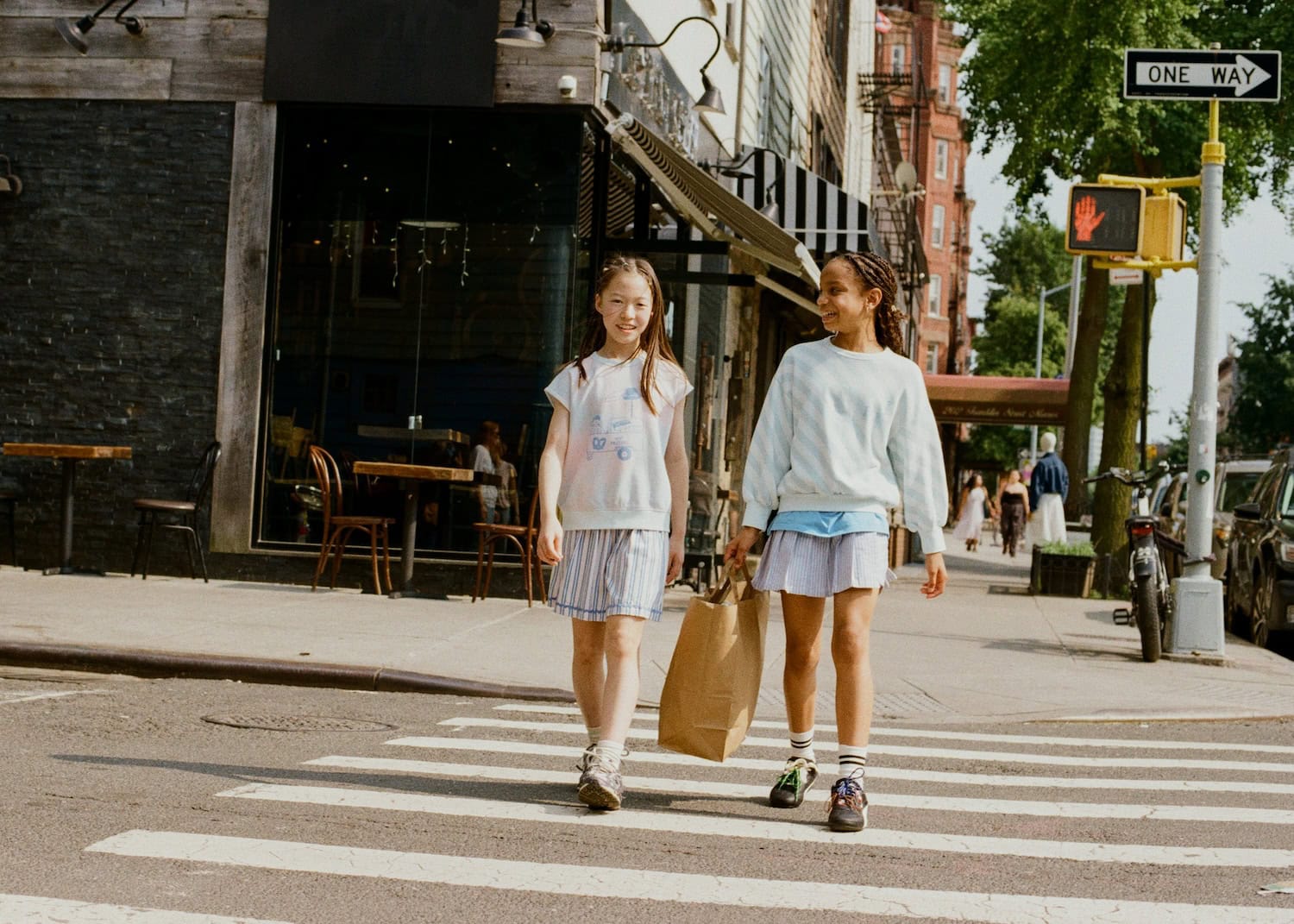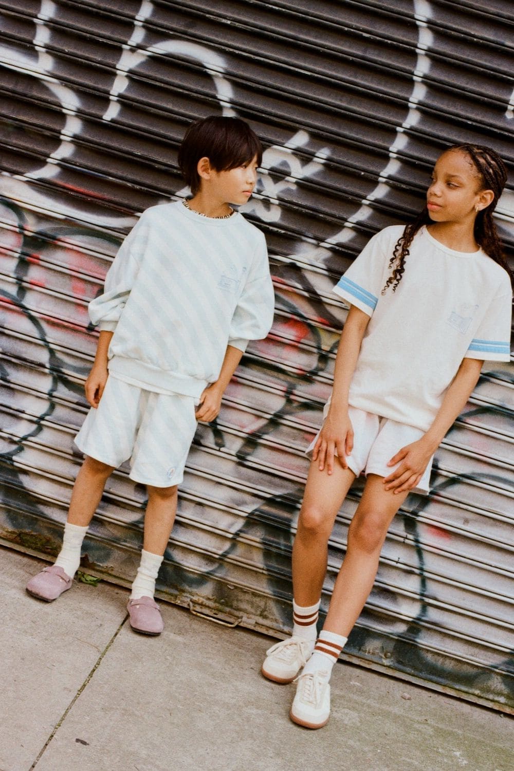 Simple, unfussy silhouettes define the wardrobe — breathable cotton tees, relaxed sets, easy layers designed for real life. The focus remains on quality and longevity: organic cottons, recycled materials, natural dyes. Pieces made to move through playgrounds, markets, and city blocks — and to be passed down from one child to the next.