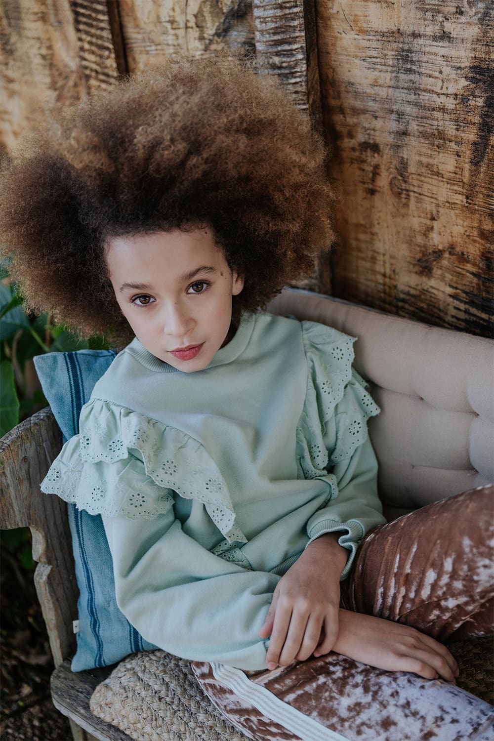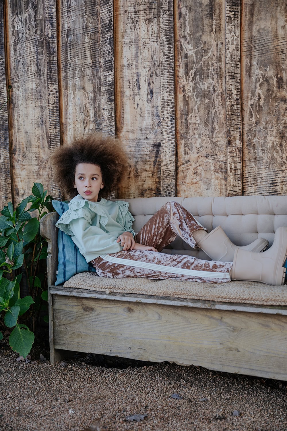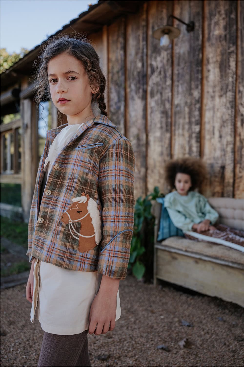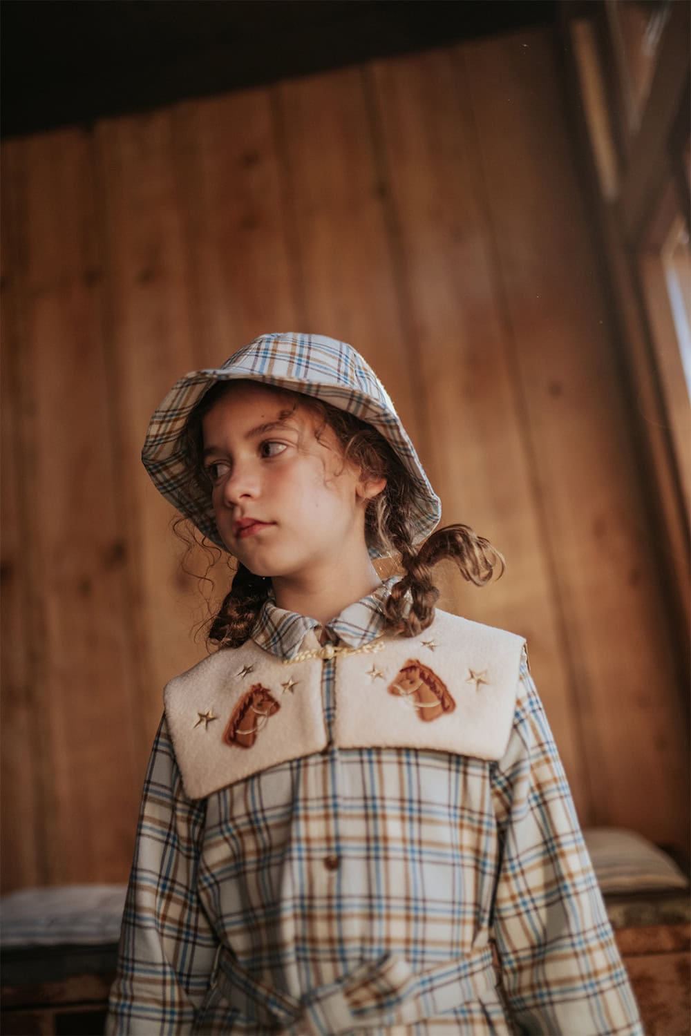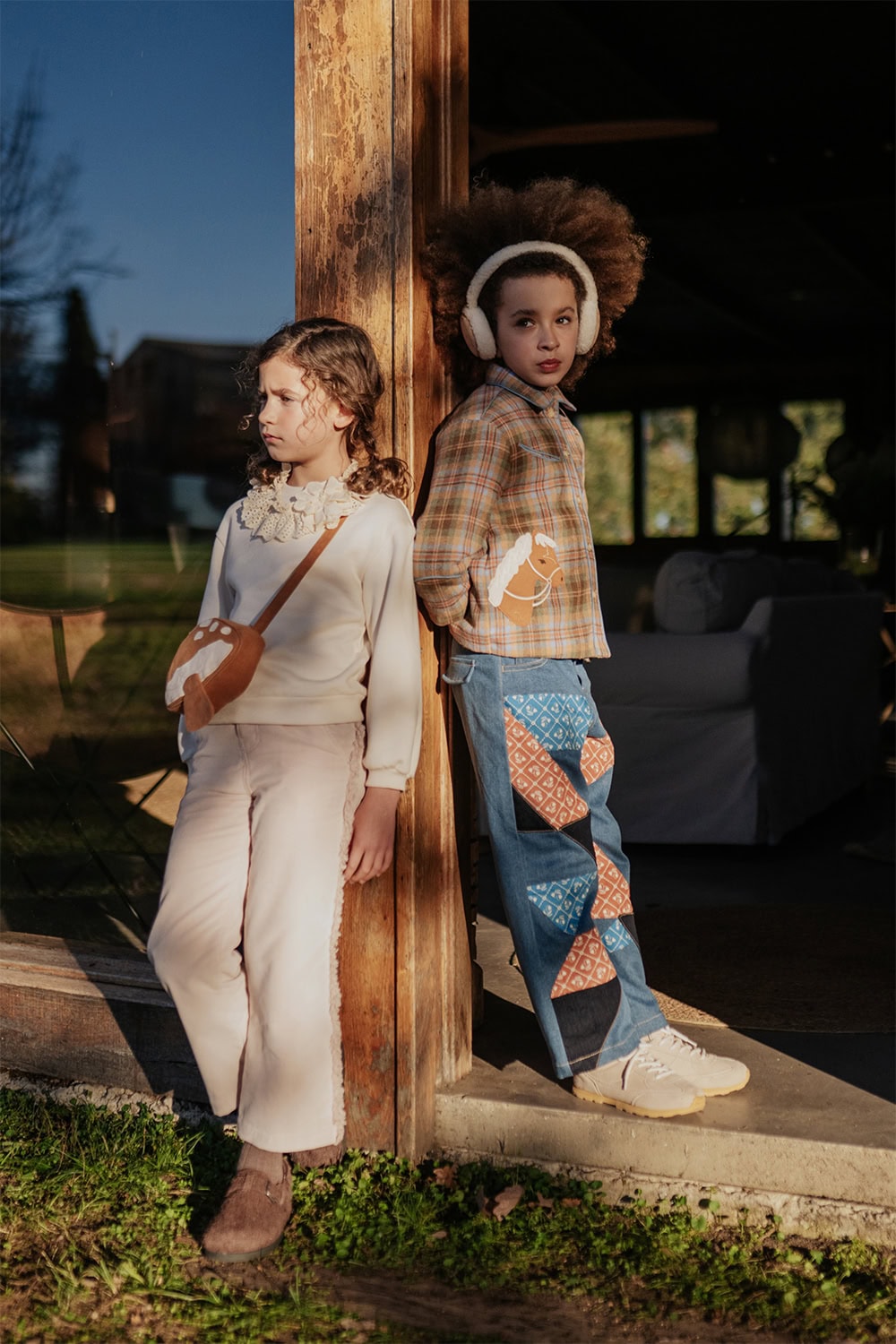 Ispirata alla creatività senza limiti delle giovani menti, questa collezione unisce la magia di una calda e spensierata vita da cottage, con la charme Western. Immaginate bambini che si lanciano verso campi come esploratori coraggiosi o intrattenendosi sotto cieli stellati. Giacche, gonne, pantaloni e vestiti si trasformano in outfit per fughe dalla realtà.