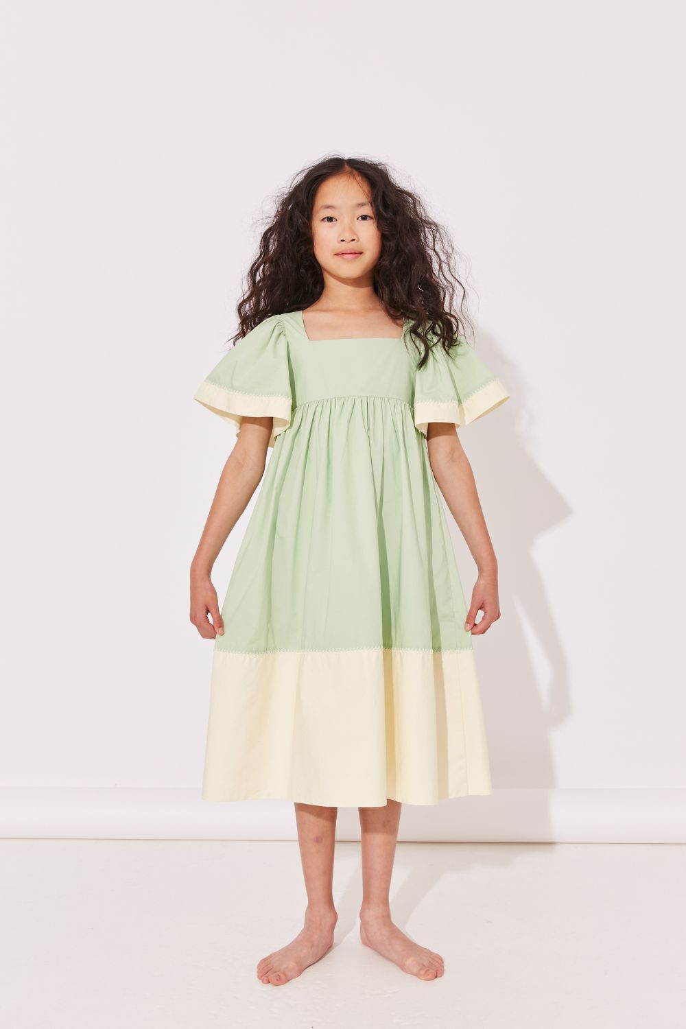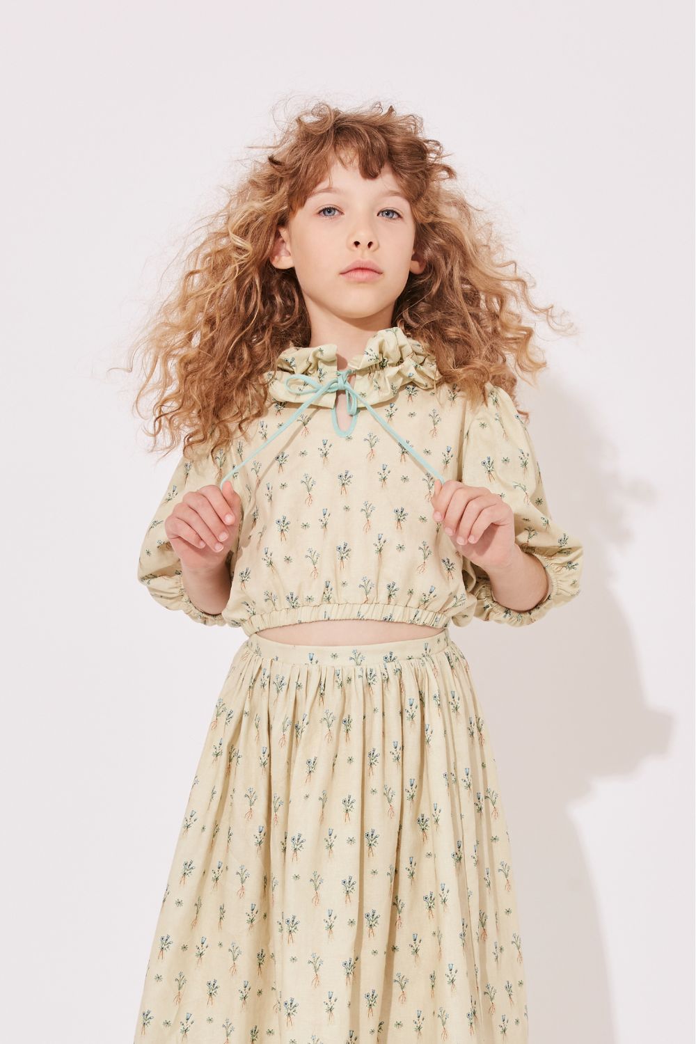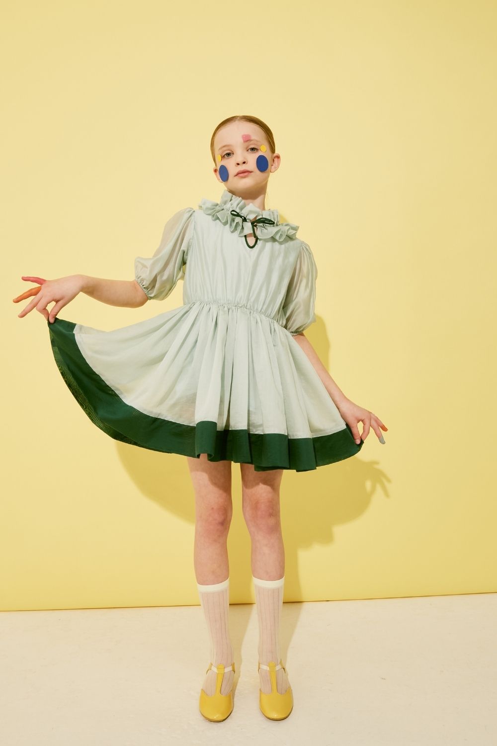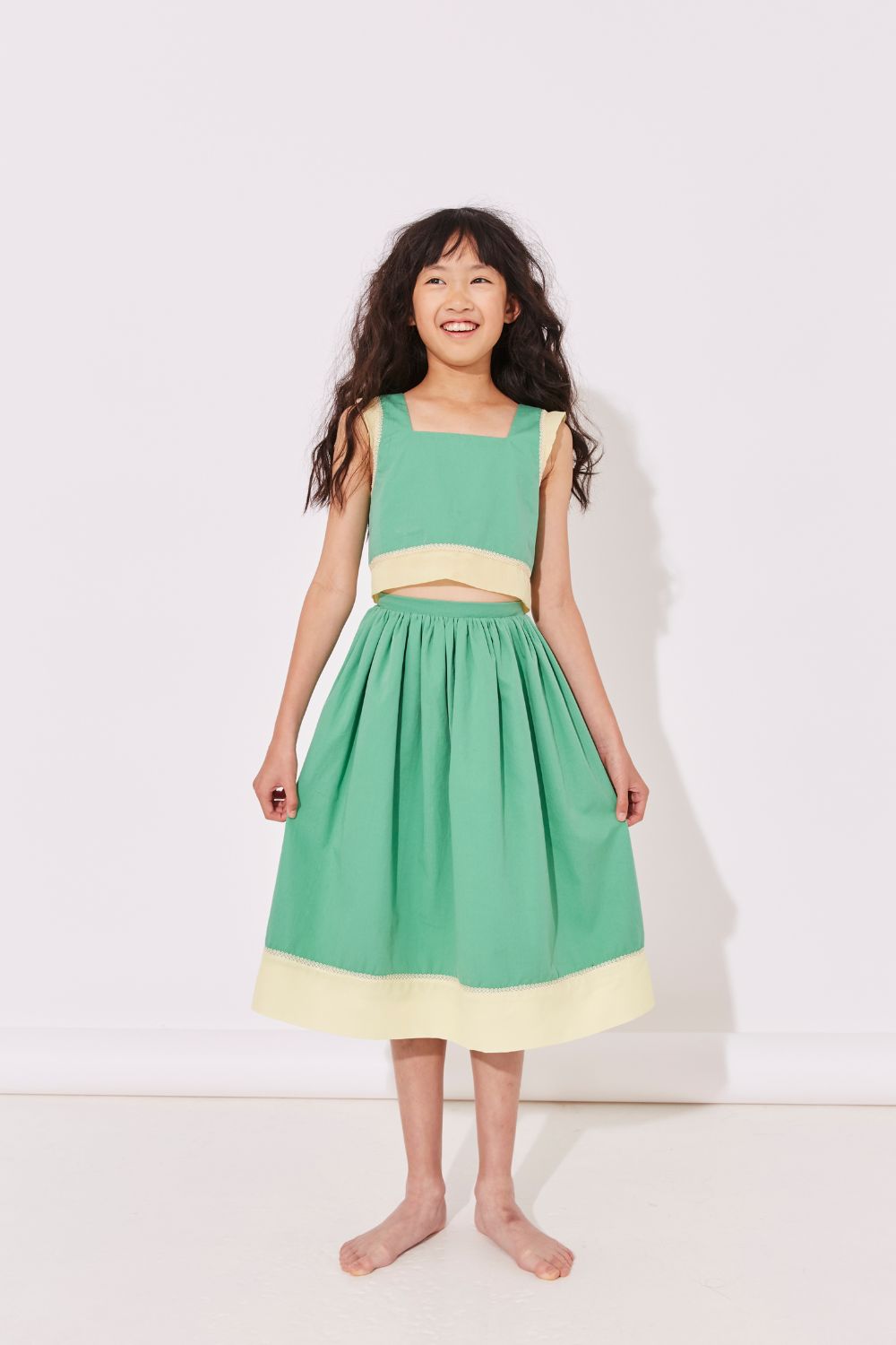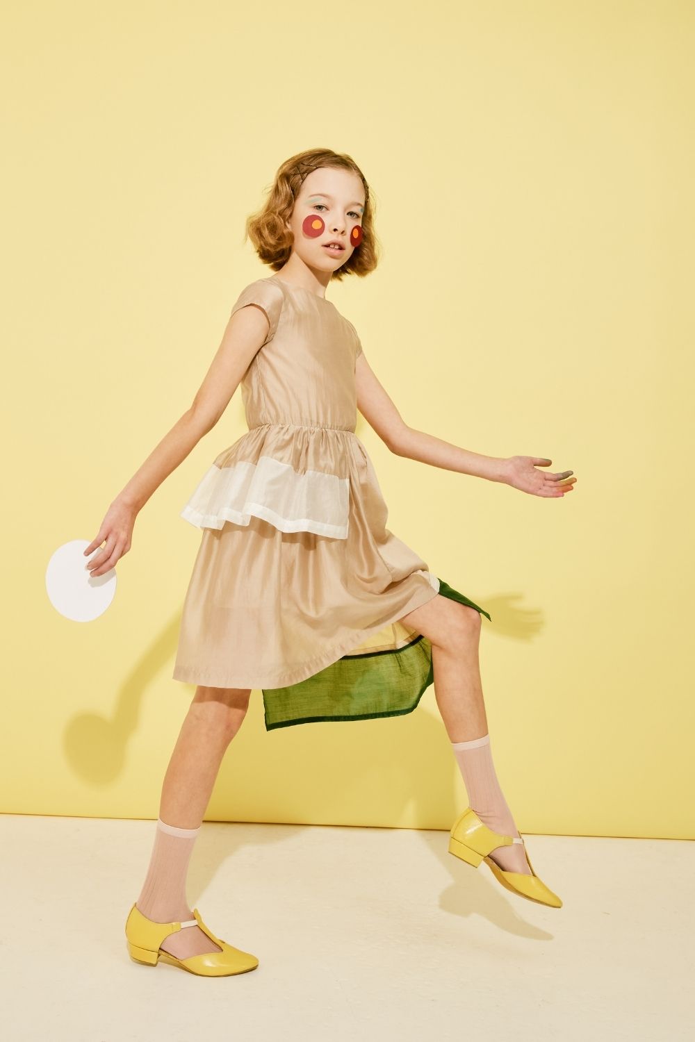 Se l’estate è da sempre sinonimo di libertà, desiderio di viaggio e attrazione per l’ignoto, allora questo è il momento in cui prendere il volo. Per perdersi un po’… e poi ritrovarsi, passando per Grown Up Grove, il viale dove si cresce. Le immagini della campagna giocano con l’idea che ciò che mostriamo non è mai tutto ciò che siamo. Quello che pensiamo di noi stesse può essere diverso da ciò che gli altri vedono. Questo viaggio — lieve, simbolico, trasformativo — è un’apertura degli occhi, in tutti i sensi. La palette della collezione racchiude l’essenza più luminosa dell’estate. Voile di cotone impalpabili, viscose leggere e popeline frizzanti si tingono di tonalità soft come Lettuce, French Manicure e Pina Colada, accanto a note più sature come Verdigris, Rainforest Green e August Sky. Il bianco Swan aggiunge freschezza, mentre una stampa floreale dipinta a mano sboccia sui capi in lino.