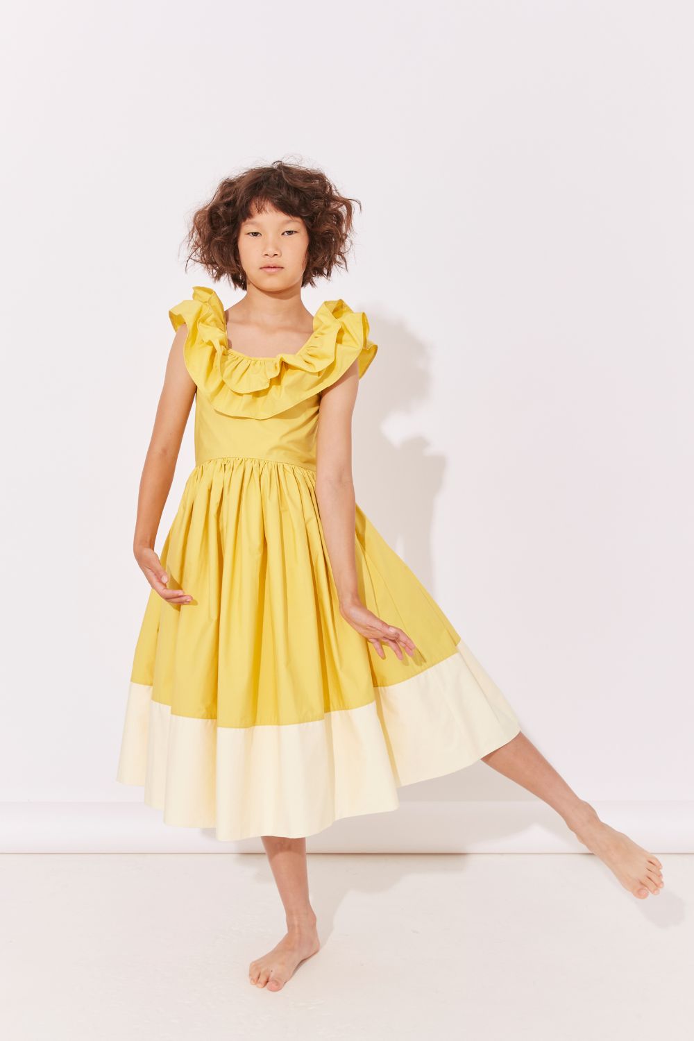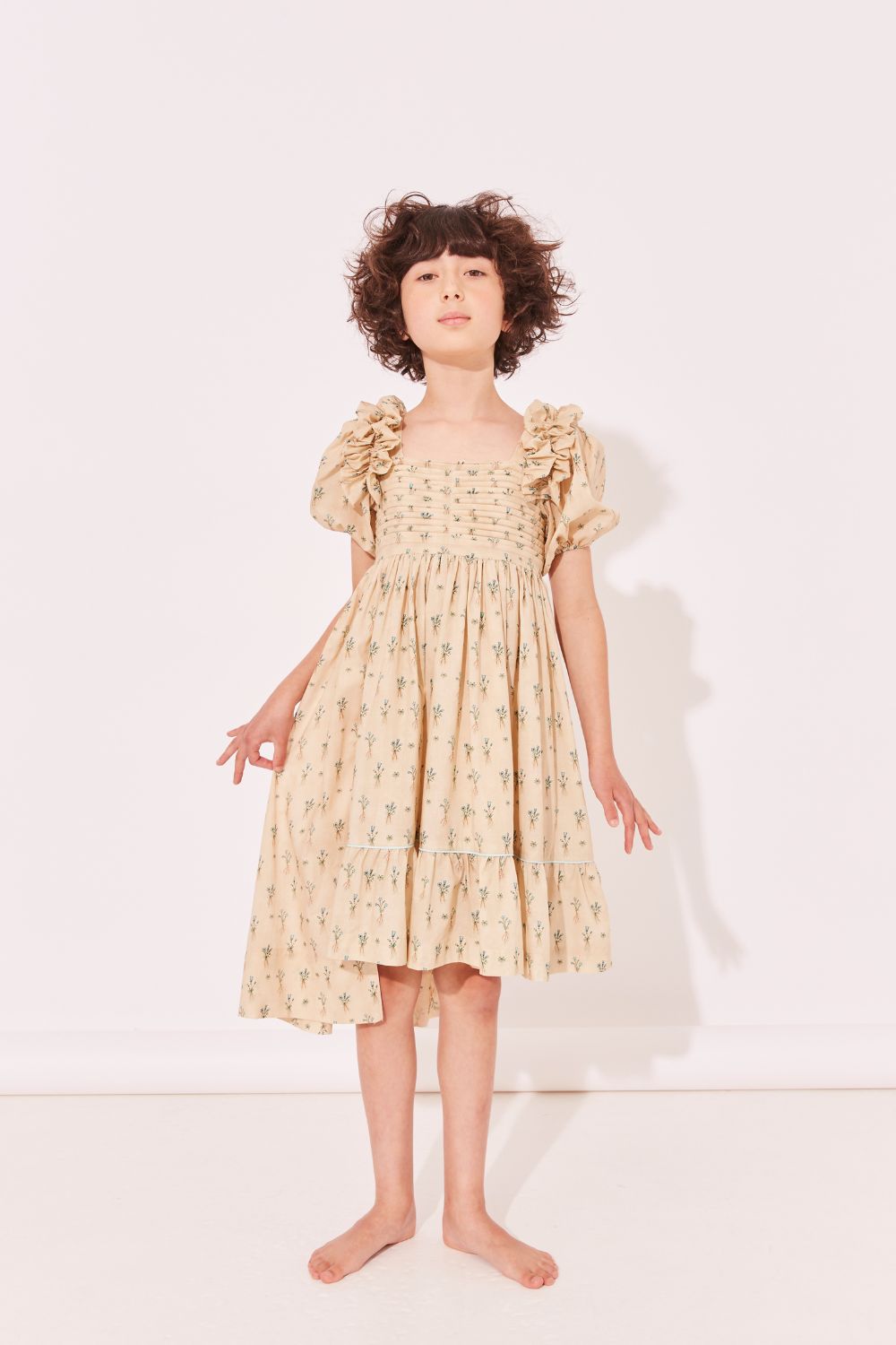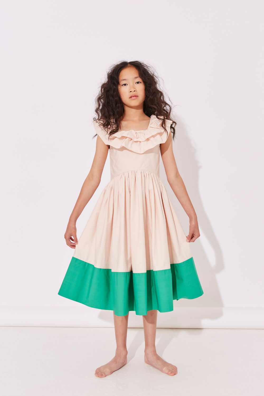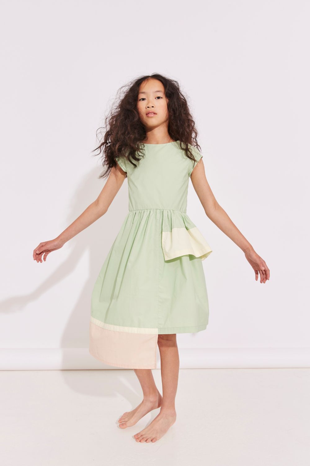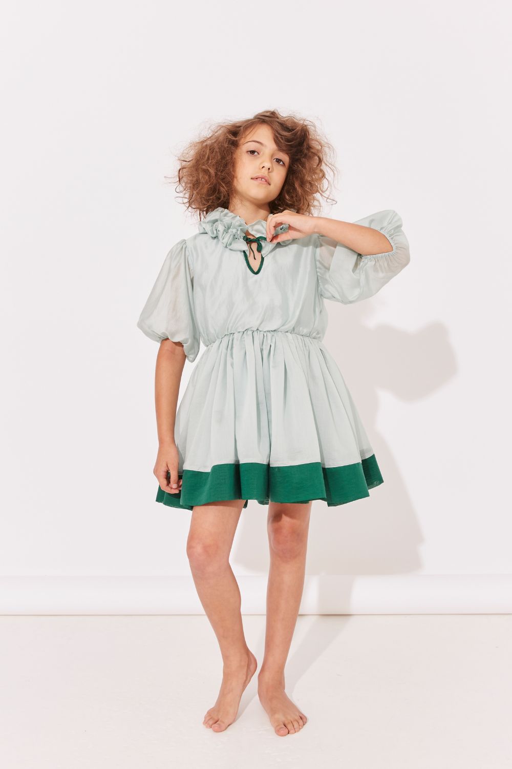 Se l’estate è da sempre sinonimo di libertà, desiderio di viaggio e attrazione per l’ignoto, allora questo è il momento in cui prendere il volo. Per perdersi un po’… e poi ritrovarsi, passando per Grown Up Grove, il viale dove si cresce. Le immagini della campagna giocano con l’idea che ciò che mostriamo non è mai tutto ciò che siamo. Quello che pensiamo di noi stesse può essere diverso da ciò che gli altri vedono. Questo viaggio — lieve, simbolico, trasformativo — è un’apertura degli occhi, in tutti i sensi. La palette della collezione racchiude l’essenza più luminosa dell’estate. Voile di cotone impalpabili, viscose leggere e popeline frizzanti si tingono di tonalità soft come Lettuce, French Manicure e Pina Colada, accanto a note più sature come Verdigris, Rainforest Green e August Sky. Il bianco Swan aggiunge freschezza, mentre una stampa floreale dipinta a mano sboccia sui capi in lino.