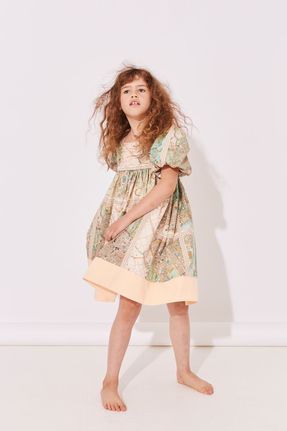 La stampa Old London Map regala un twist vintage, attualizzato da bordi profondi e profili a contrasto. L’intenzione? Dare vita a uno stile romantico ma contemporaneo. Abiti ampi, orli balloon, lunghezze midi, ruches e bloomers incontrano tagli più puliti, maniche ad aletta e asimmetrie misurate. Look pensati per farla fluttuare libera, tutta l’estate. Portarla lontano, dove tutto cambia.
